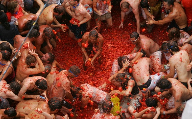 Томатина, пожалуй, один из известнейших необычных фестивалей в Европе. Проще говоря, это битва помидорами, которая проходит в испанском городе Буньол в последнюю среду августа.