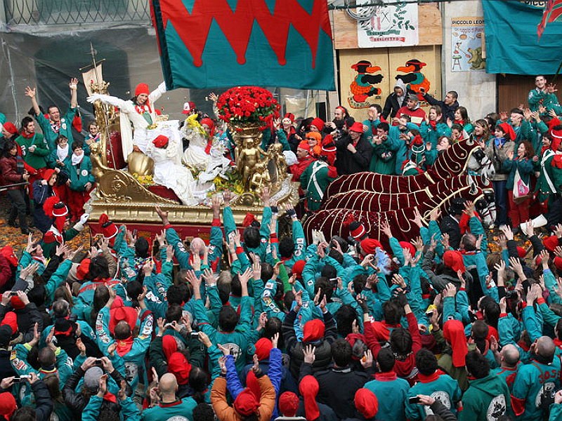 Так это или иначе, но каждый февраль здесь растекаются по улицам реки сока «невинно убиенных» апельсинов, радуя всех участников апельсиновых боев и веселя зрителей. Заканчивается празднество победным шествием всех «воинов», возглавляет которое прекрасная итальянка в белых одеждах.