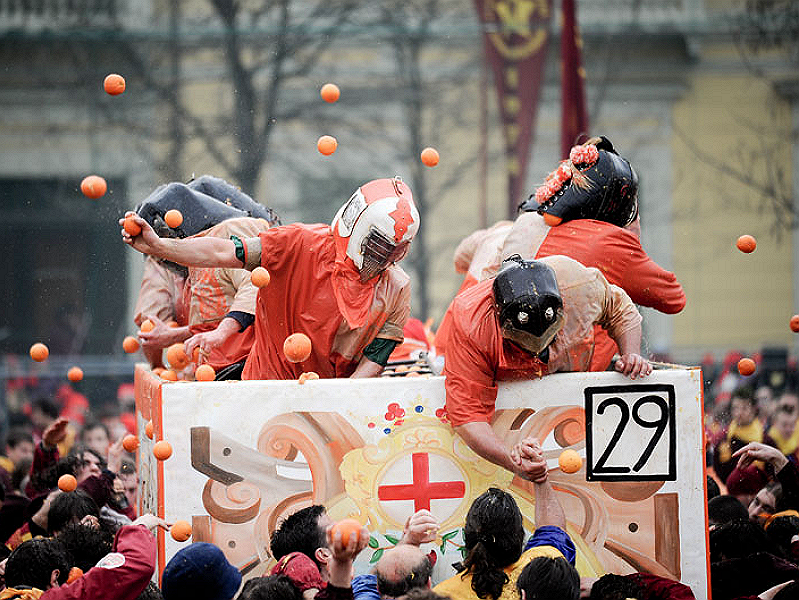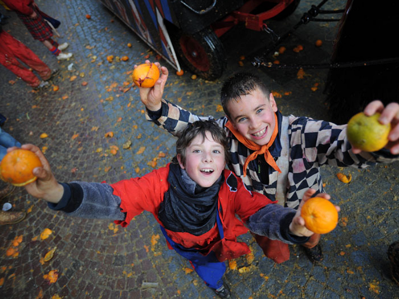 Февраль и март в Европе – самые насыщенные праздниками и карнавалами месяцы. Едва ли не каждый уважающий себя городок считает своим долгом устроить какое-нибудь удивительное и грандиозное событие. Вот и итальянская Иврея, находящаяся на севере страны, не отстает от моды: ее апельсиновые битвы известны на весь мир.