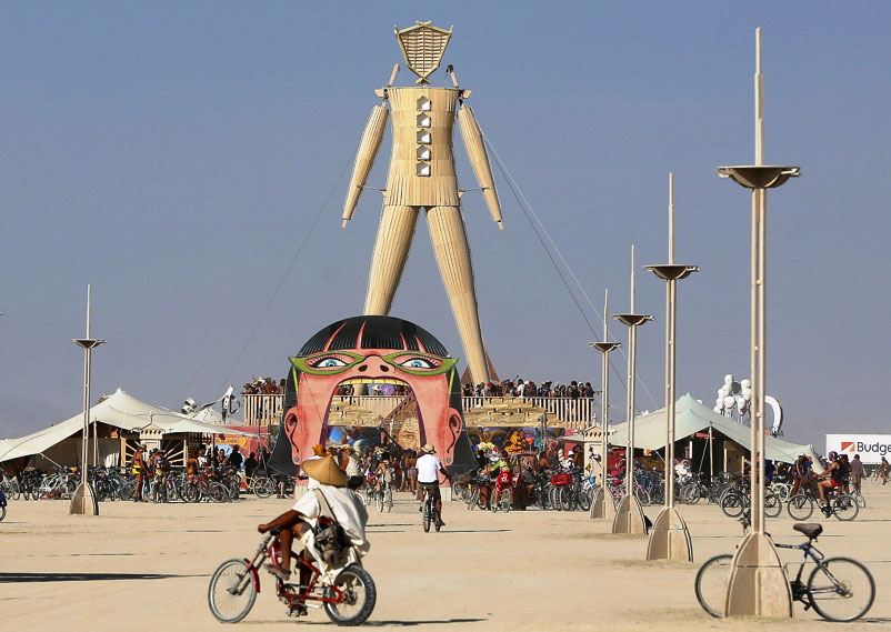 Чем же так необычен фестиваль Burning Man, если каждый год в пустыню Блек Рок в американском штате Невада стекается не менее 70 тыс. человек? Ровно на одну неделю на пустынных песках вырастает целый город с улицами и даже кварталами, на которых вместо домов стоят палатки, машины или жилые фургончики.
