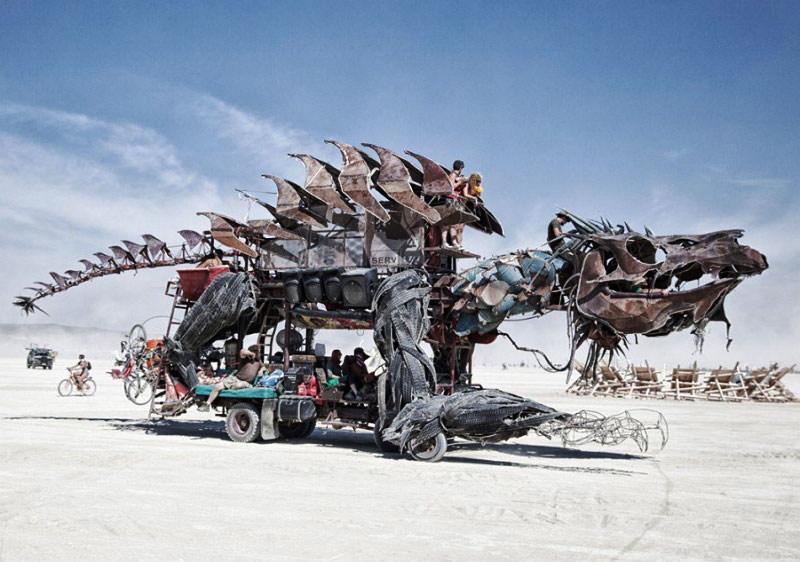 Одна из главных идей фестиваля Burning Man – самостоятельное выживание в условиях пустыни. Ночлег, питание, вода, защита от жары и ветра – обо всем этом должен позаботиться сам участник. Ночуют люди обычно в тех средствах передвижения, на которых приезжают. Причем, как правило, это ооочень необычные машины.