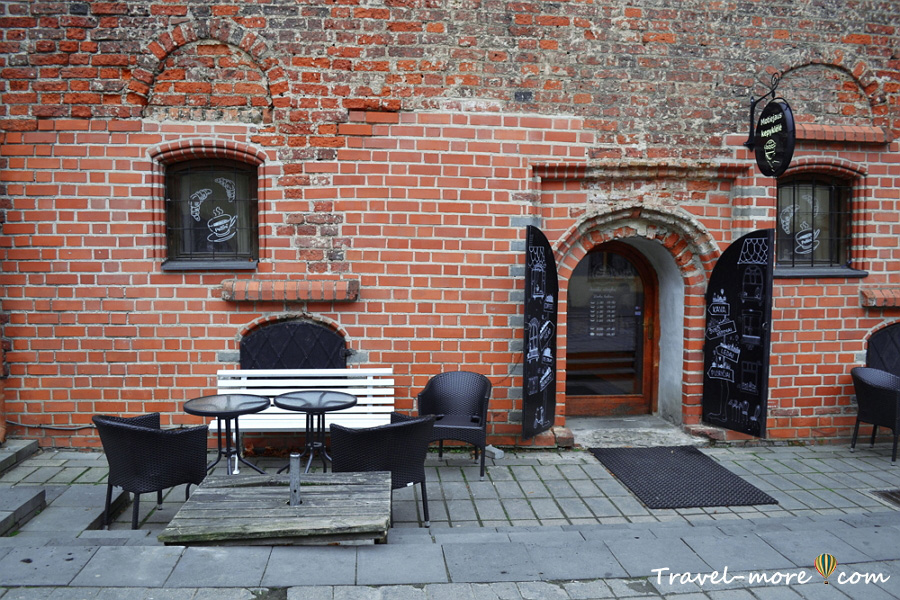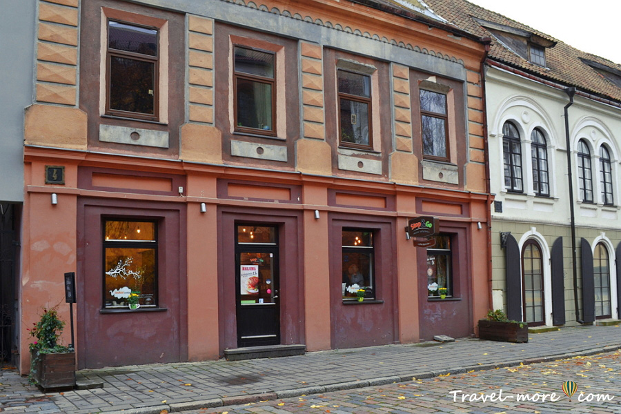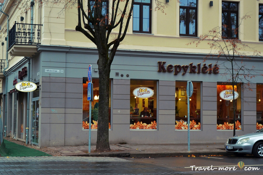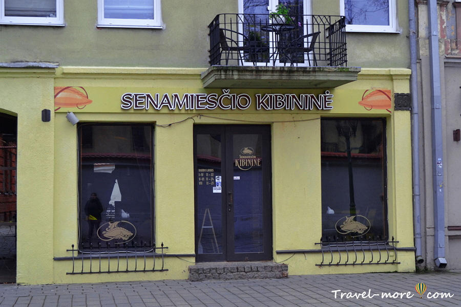 Литовский язык для меня такой же непонятный, как венгерский: вроде большинство букв знакомо, но никакого шанса угадать перевод. Тем не менее, на вывеске одного из заведений я заметила слово, похожее на «кибинаи», и решила, что сюда стоит зайти за знаменитыми литовскими пирожками.