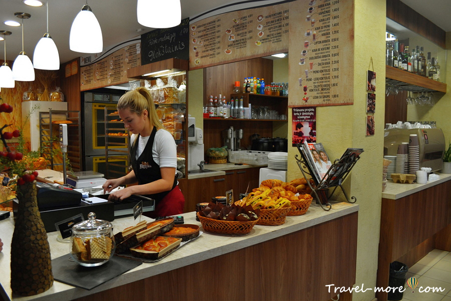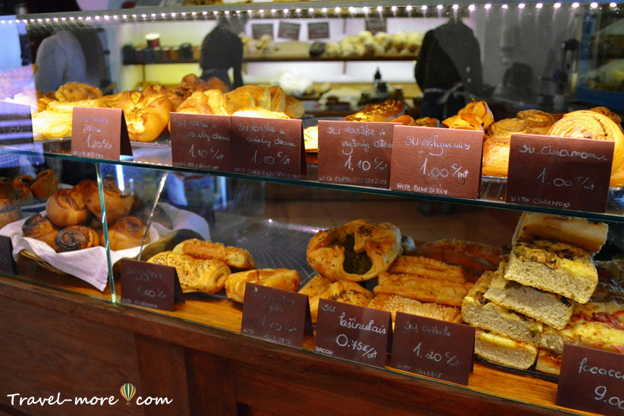 Думаю, в Каунасе осенью не слишком много туристов, поэтому рискну предположить, что заведение популярно у местных. А если так, то это дает ему пару бонусных очков. К тому же, не булочками едиными может похвастаться бренд. В крупных кафешках сети подают вполне полноценные блюда: омлеты, лазаньи, супы, вареники. И все это в пределах 5 евро. Возьмите на заметку, что делать заказ почти всегда нужно у кассы.
