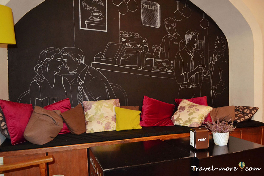 Еще одна кафешка в центре «зацепила» взгляд вынесенными на улицу столиками и открытыми с утра пораньше дверьми. В будни эта кофейня работает аж с 7:30 утра, каждый день до 11:00 тут подают завтраки.