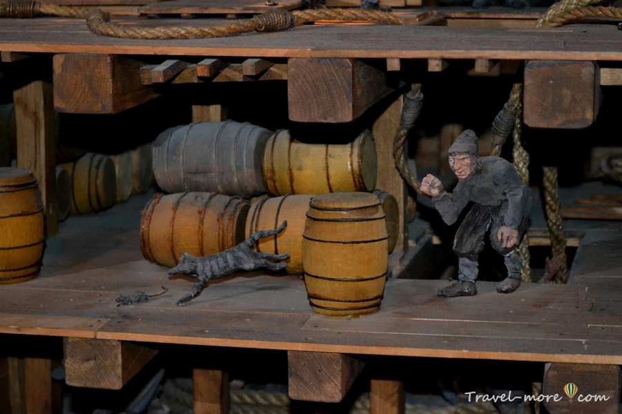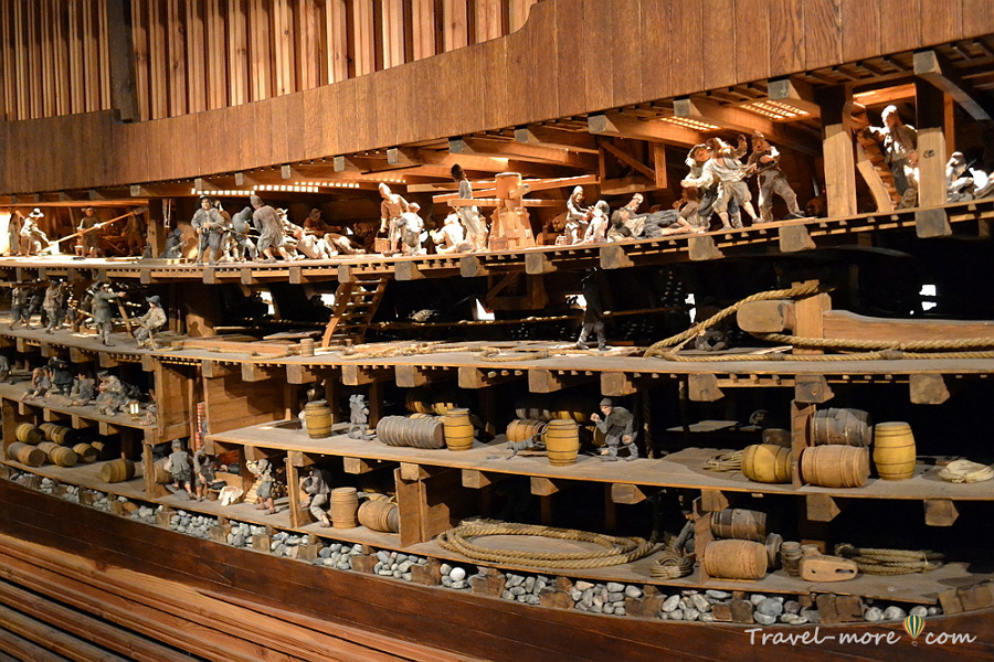 Отдельная экспозиция рассказывает о том, каким образом корабль оказался на дне. «Да неужели!», – сказал сейчас кто-то. Ну, должны же вы были хоть досюда дочитать. Сгубили его размеры и природа – все как в истории с Титаником, только на пару веков ранее прославленной Кэмероном эпопеи.