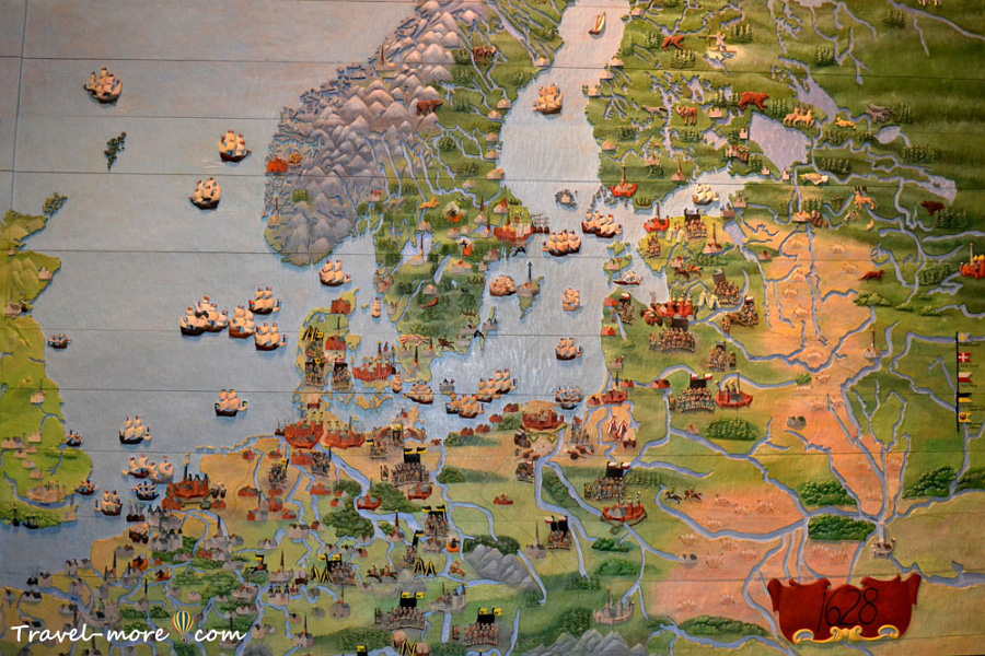 Что еще интересно, музей погружает в эпоху периода постройки корабля и рассказывает интересные сведения о ней. Например, вот так обстояли дела с армиями и флотилиями у разных государств в 17 веке.