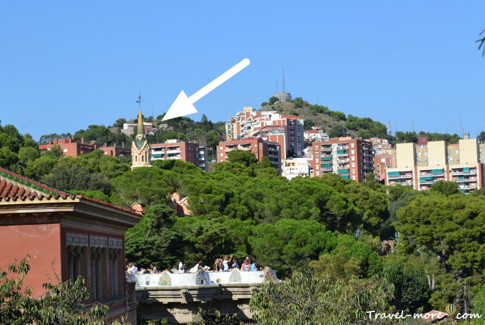В доме, который когда-то был куплен самим Гауди, архитектор жил до 1925 года. Сейчас там музей, в который пускают за 5 евро. Он возвышается справа от смотровой площадки. Вот его башенка.