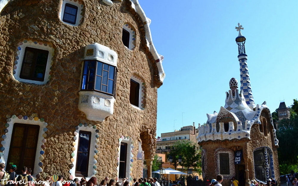 Пропустить вход в Парк Гуэля невозможно – он находится прямо между двумя экстравагантными коричневыми домиками с крышами как будто из глазури. Тот, что с башенкой и крестом, предназначался для администрации парка.