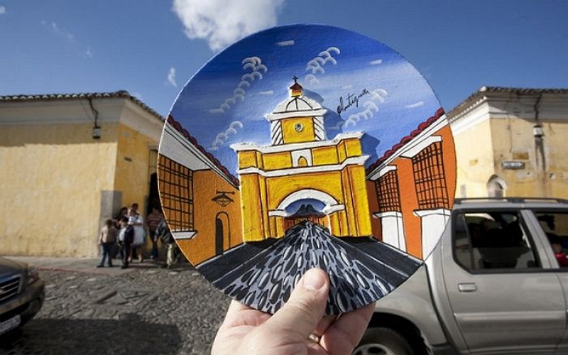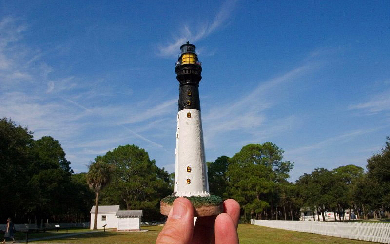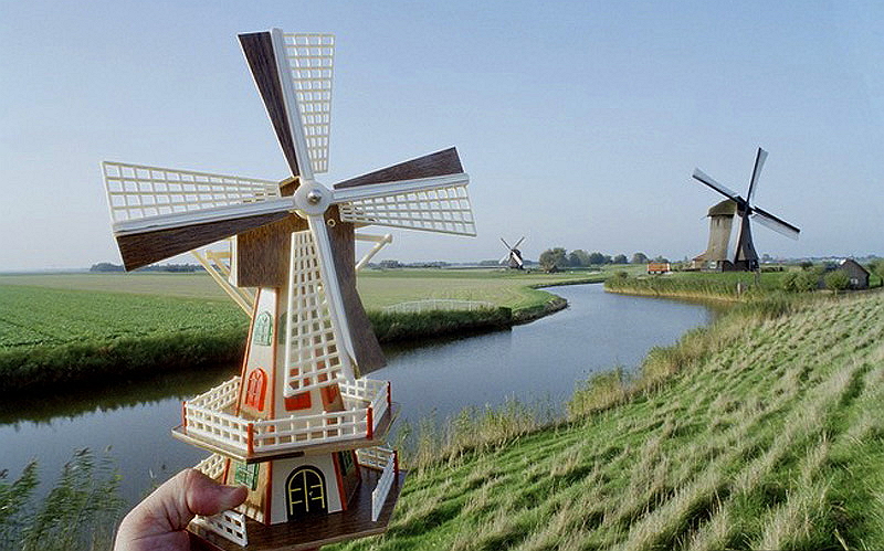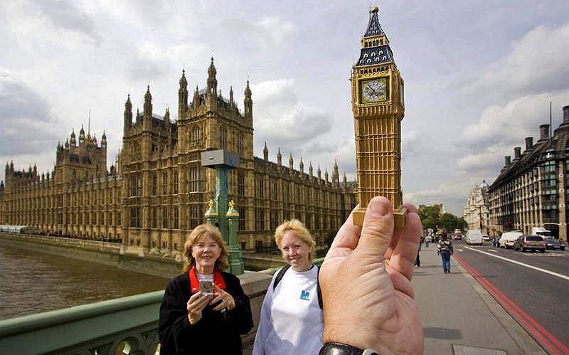 Британский фотограф Майкл Хьюджес – большой фанат путешествий. Совместив два своих любимых занятия – фотосъемку и туризм – он создал уникальный фотопроект, который сделал его знаменитым. А идея была очень проста: Майкл просто фотографировал сувениры на фоне их реальных копий. Получилось необычно и очень интересно. За 10 лет ему удалось собрать более 150 фотографий, объединенных общей идеей и сделанных в самых разных уголках планеты. Предлагаем вашему вниманию наиболее интересные снимки. Кстати, это довольно неплохая идея, как сделать необычное фото в путешествии. А то, в самом деле, сколько уже можно целовать Сфинкса и подпирать Пизанскую башню?