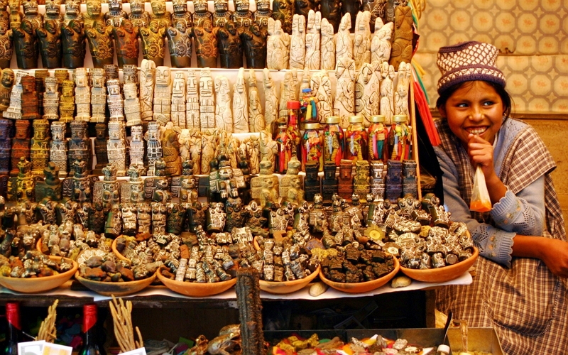 Но это не все, ради чего боливийцы приходят на этот странный базар. На рынке можно купить смеси трав, помогающих вылечить любую болезнь. Есть здесь и готовые эликсиры: принимай хоть сразу. Но если это отдаленно напоминает нашу народную медицину, то другие товары – самые что ни на есть волшебные. Талисманы, тотемы и прочие сакральные предметы имеют определенную колдовскую силу.