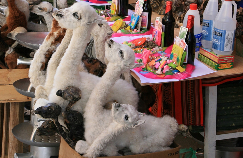 Важно отметить, что боливийцы – католики. Однако христианская церковь, похоже, не смогла вытеснить с их земель куда более древнюю религию. Как любили когда-то инки совершать различные жертвоприношения, так и сегодня их потомки еще помнят эти традиции. Вот только убивать животных в наше время нехорошо, потому современные обряды проводятся на уже умерщвленных существах, которых как раз и можно приобрести на рынке ведьм. А то, что в трупики их превратил кто-то другой, так это уже отдельная история.