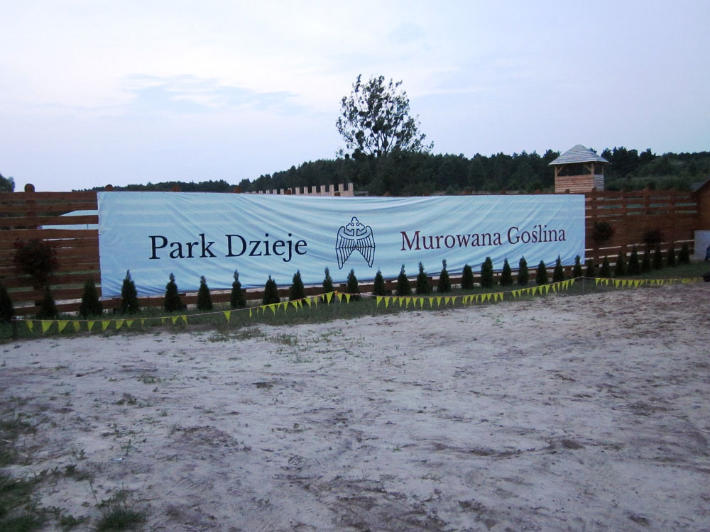 После «Мальты» нас отвезли в исторический Парк «Dzieje». Приехали мы туда под вечер, шли пешком через поле. Выглядело все очень странно, ведь нам обещали… театральную постановку. Но вскоре мы вышли на площадку с сувенирными киосками и огромной трибуной.