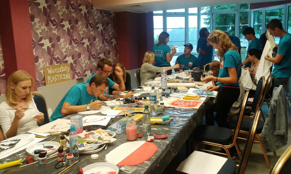 Собственно, о мастер-классах. По-польски эти занятия назывались «варштатами» и представляли собой 3-часовую работу в группах по выбранным направлениям. Можно было записаться на полонистику, художества, музыку, танцы и театральное мастерство. Варштаты проводились каждый день (кроме выходных) и закончились выпускным проектом.