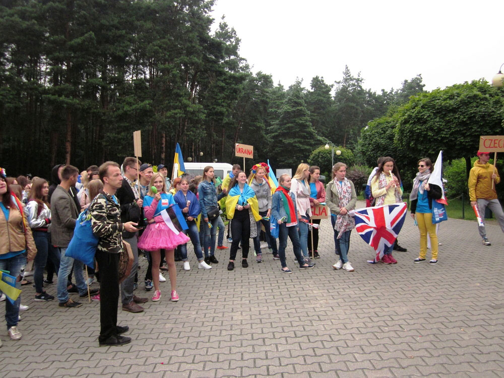 Торжественное открытие слета было запланировано на вечер второго дня, поэтому я не сразу поняла, насколько масштабным оказалось мероприятие. Представители стран с флагами едва уместились на импровизированной сцене. Оказалось, что в небольшой городок Вонгровец съехались ребята из 16 стран. Специально перечислю их все, чтобы вы поняли размах: Армения, Беларусь, Великобритания, Венгрия, Германия, Испания, Латвия, Нидерланды, Норвегия, Россия, США, Украина, Франция, Чехия, Эстония, Япония.