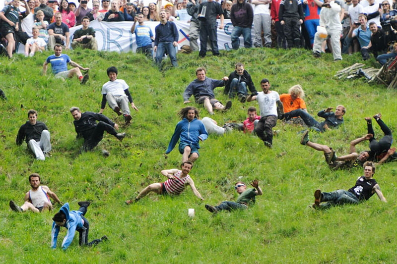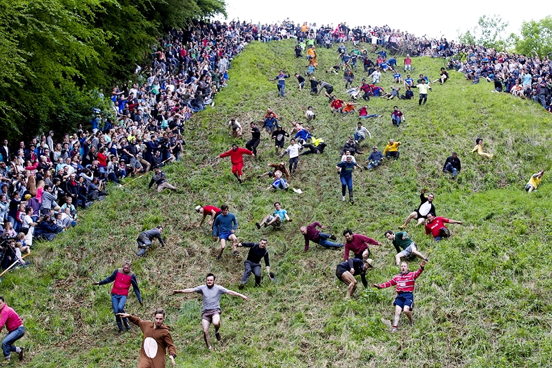 Каждый год во второй половине мая в Англии любители экстрима стягиваются к холму Купер-хилл, который находится недалеко от города Глостера, чтобы совершить забег за головкой сыра.