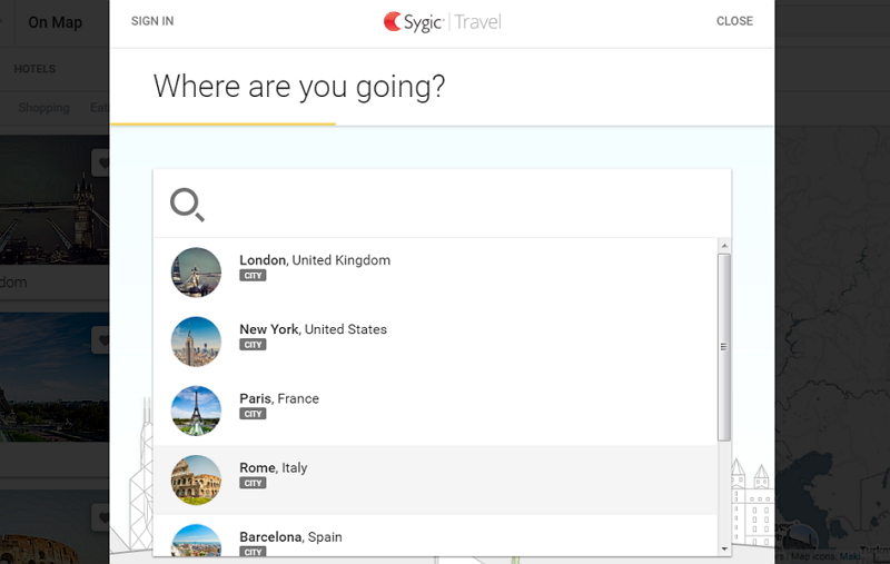 Как только вы открываете сайт, вам сразу же предлагается выбрать место назначения. А не съездить ли нам в Рим в сентябре?