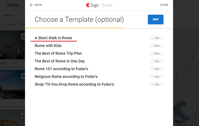 После этого нам предлагается выбрать один из стандартных вариантов тура, который будет шаблоном нашего путешествия. Если вам ничего не подошло из этого списка, можно ничего не выбирать и просто «проскочить» этот этап.