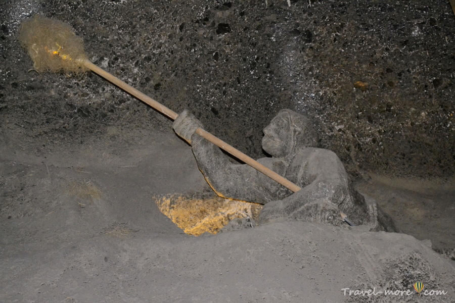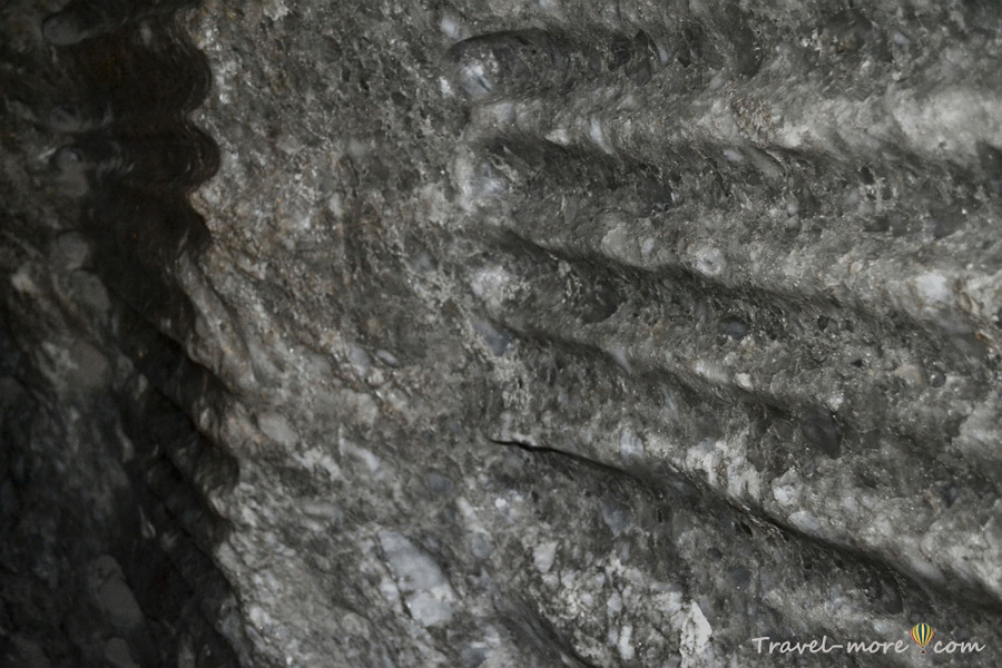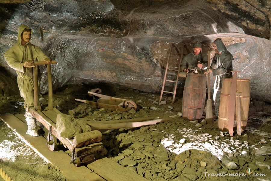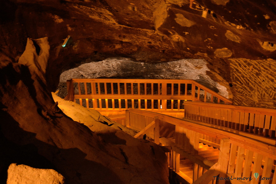 Есть на туристическом маршруте выработка, состоящая из двух этажей. В ней раньше добывали мелкую соль. Лестницу на нижний ярус можно назвать роскошью современности, потому что работники шахты в свое время спускались вниз в гораздо более экстремальных условиях: довольствовались сходом, самостоятельно вырубленным в скале. При этом им нужно было поднимать наверх мешки с солью.