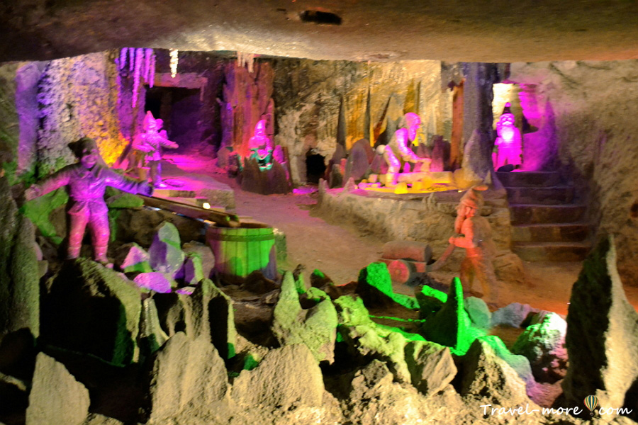 Гномы тоже сделаны из соли, и когда в зале включается подсветка, композиция становится очень веселенькой. Еще немного – и действительно поверишь в существование этих персонажей, и начнешь украдкой поглядывать за соляные выступы.