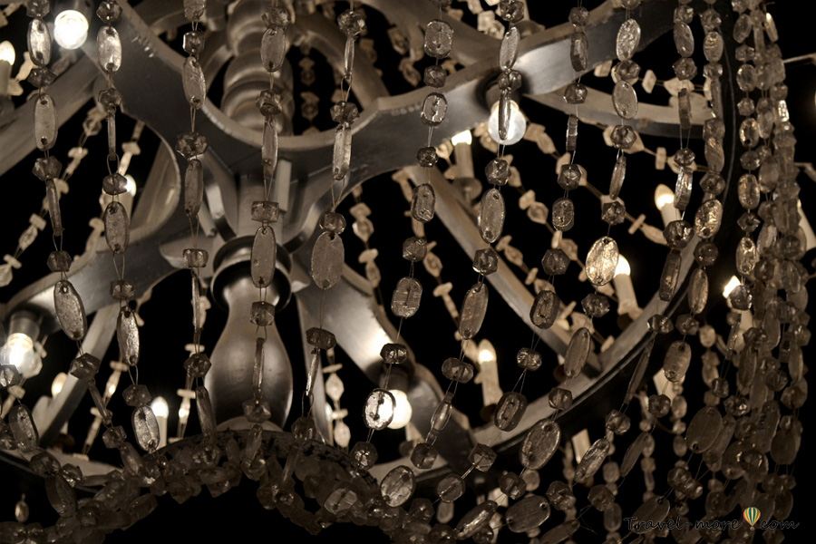 Свисающи с потолка массивные светильники – первое, на что обращаешь внимание. Они, конечно же, сделаны из кристаллов соли, что потрясает еще больше.