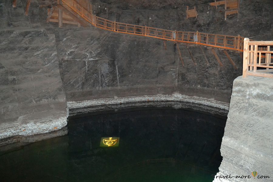 Чего под землей никак не ожидаешь увидеть, так это озера. И все же, оно тут есть, и даже не одно. Искупаться, правда, не получится: в воде такая концентрация соли, что ее как будто начерпали из Мертвого моря – 320 г на 1 л. «Можно огурцы солить, не выходя из шахты!», – подумала я, но это были бы очень соленые огурцы, потому что для засолки обычно хватает 60-70 г соли на литр. Водолазы, которые собирают со дна заброшенные туристами монеты, не обходятся без дополнительного груза.