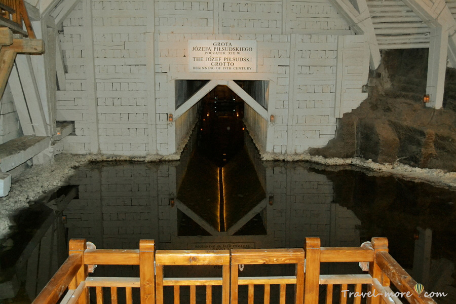 Увидели мы также камеру, которую специально заполнили водой из подземных источников, поскольку она состоит из двух помещений, соединенных тоннелем. Благодаря самодельному озеру рабочие могли переплавляться туда-сюда на плотах. Это было очень удобно, пока однажды лодка с шахтерами не перевернулась. Из-за большой концентрации соли в воде люди не смогли поднырнуть под борта, чтобы выбраться на поверхность, и погибли. С тех пор сплавляться по тоннелю перестали, а рядом с ним установили статую Святого Яна Непомуцкого.