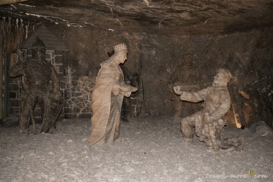 Реакция «Вау, памятник из соли!» длится ровно до тех пор, пока не понимаешь, что соленые постаменты в этих пещерах – не редкость. Следующая композиция, которую хочу вам показать, иллюстрирует легенду о принцессе Кинге и открытии месторождения каменной соли в Величке.