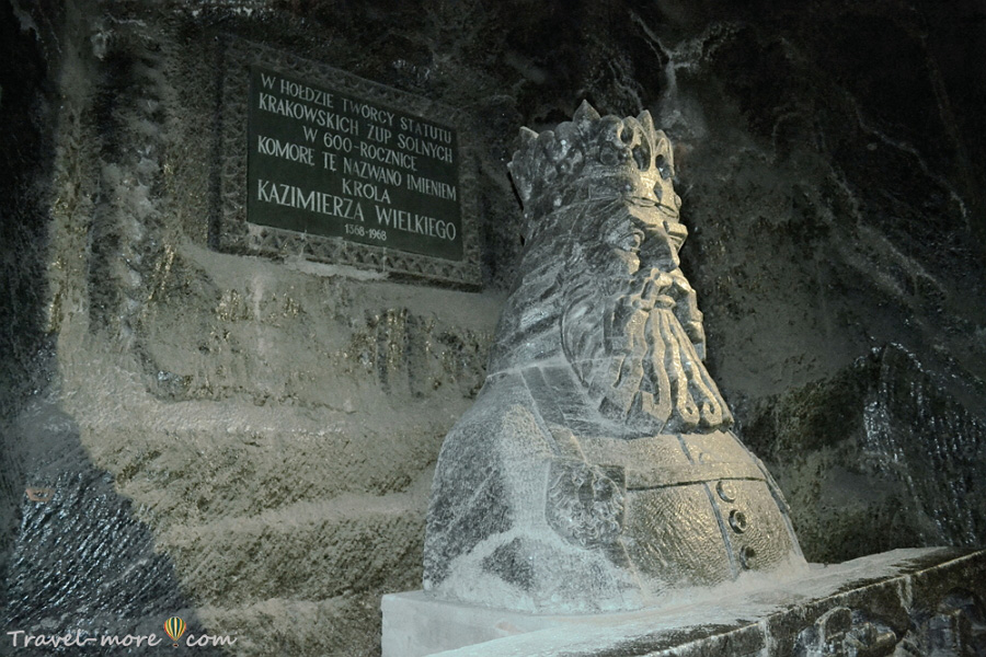 В 14-м веке доход от выработки и продажи соли составлял чуть ли не 1/3 доходов казны. Правящий тогда король Казимир Великий хорошо понимал значимость соляных копий и издал свод законов, регулирующих порядок трудоустройства шахтеров, добычу соли и торговлю этим продуктом. Спустя столетия, когда в шахте «Величка» была разработана очередная камера, в ней установили соляной бюст почитаемого народом (а в особенности шахтерами) польского короля.